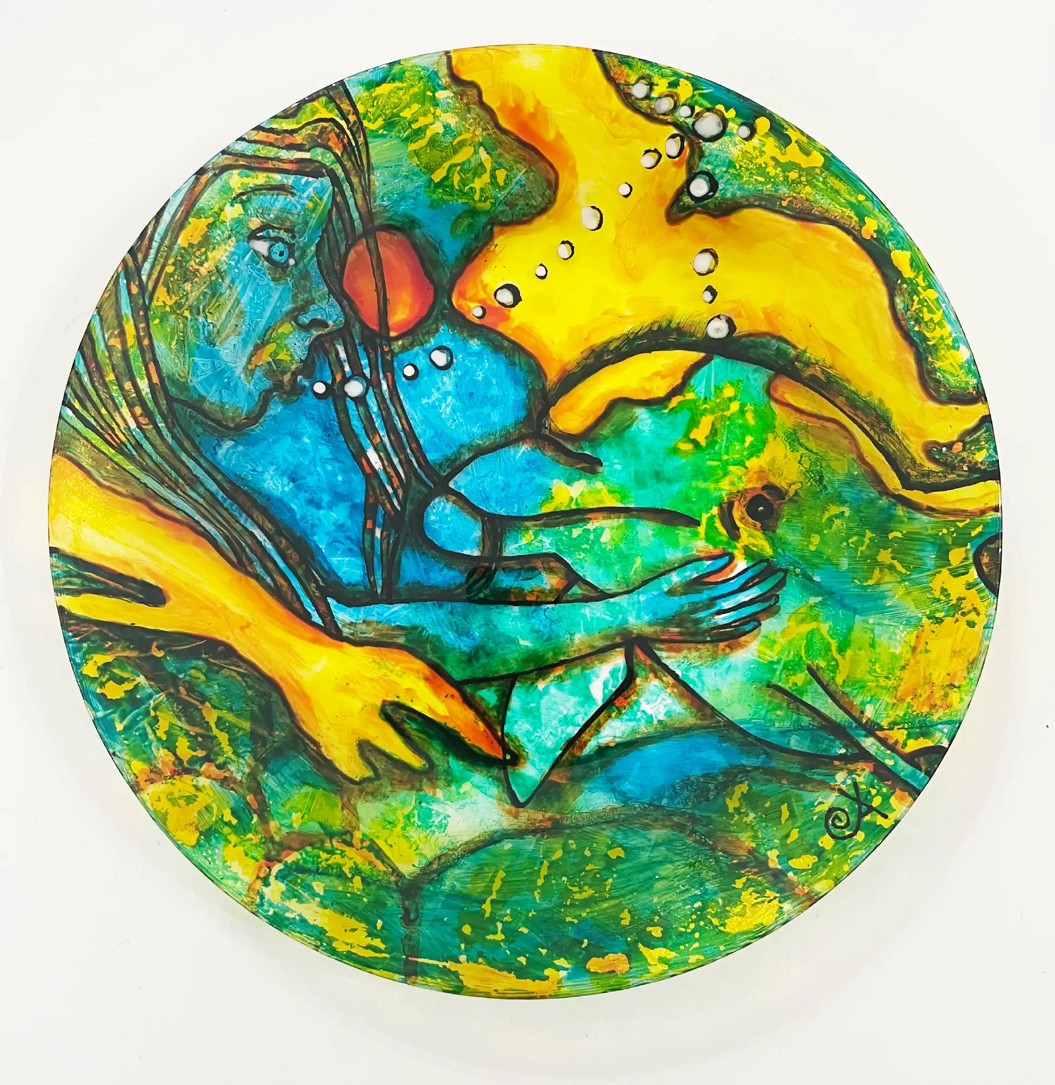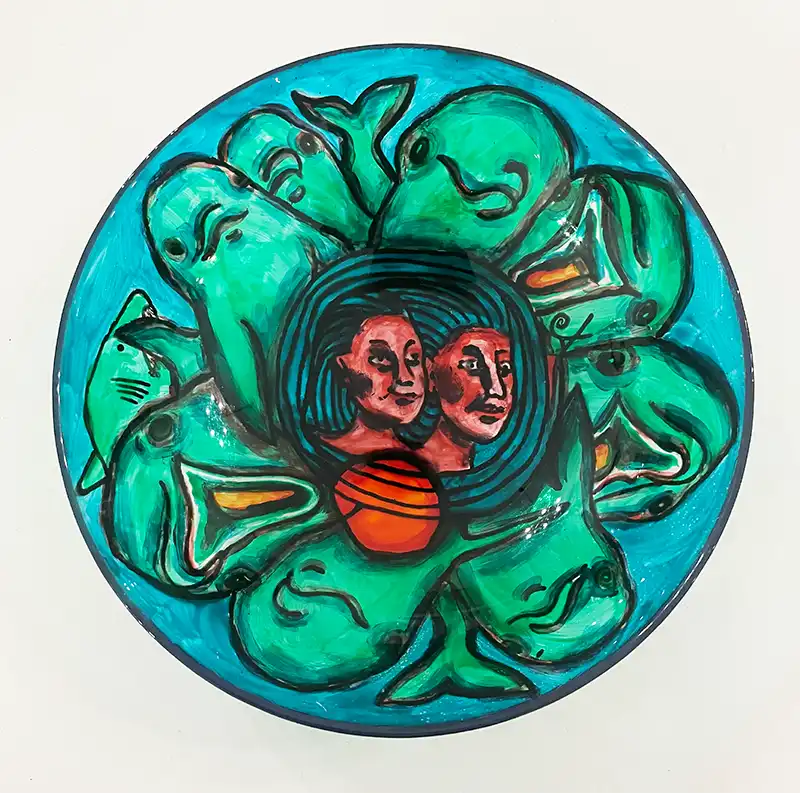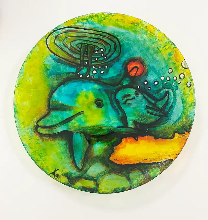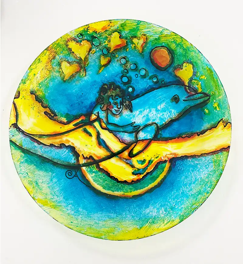 © Aniara Perzon Delfinfrossa bränd glasmålning på tallrik